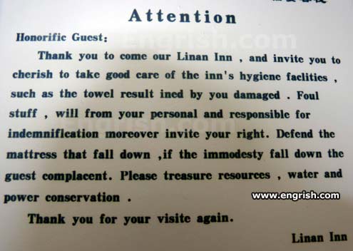 You may be used to seeing translation disasters take the form of incomprehensible garbage. In such cases, although the system fails to produce an accurate or even comprehensible translation, there is arguably little harm done in the sense that the failure can at least be detected easily by a speaker of the target language. Or in other words, the reader hopefully knows to simply take no notice of a translation that is obviously nonsense (see right).